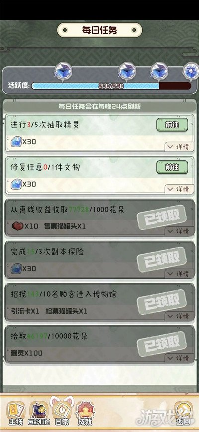 日常任务完成后会获得少量钻石和招募券。任务很好完成,建议每天尽量做完。