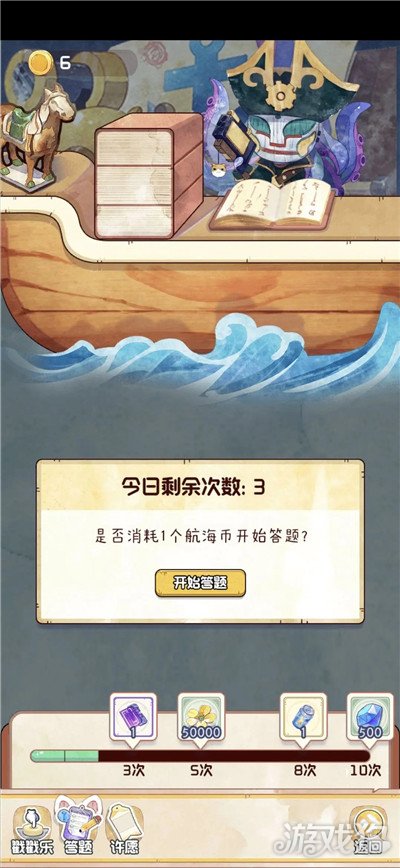 在码头探险可以获得航海币。使用航海币可以参与右上角的航海活动,在戳戳乐和答题中均有机会获得大量钻石。