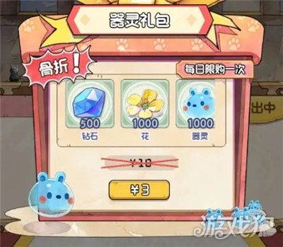 只要三块!1000器灵加500钻石,这个器灵量在前期算是一笔巨款了……再加上商店每日限购的800器灵,可以直通三楼无压力了~