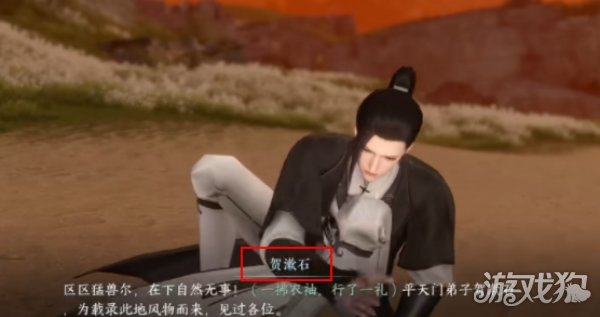 2、在【658,883】位置遇到平天门弟子贺漱石,石板在他身上。