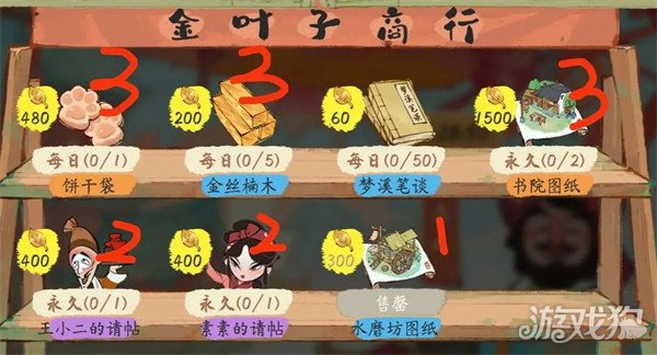 1.饼干*1+金丝楠木*n+剩余攒起来换书院