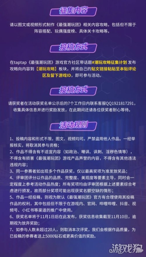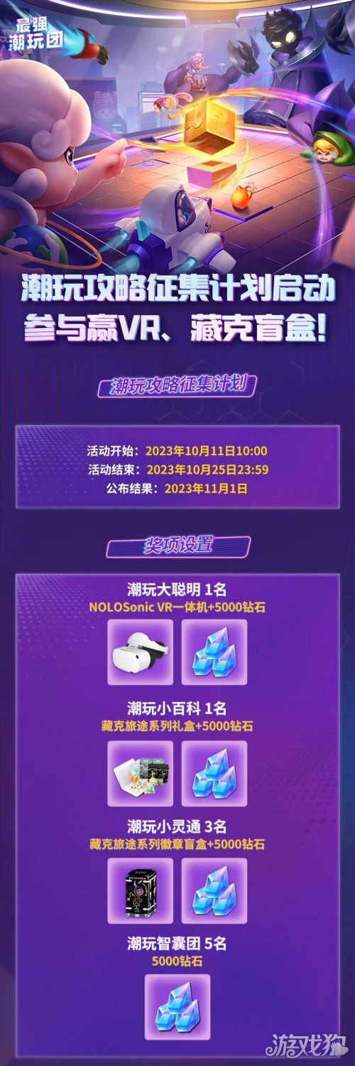 团长们参与制作《最强潮玩团》攻略向内容,就有机会获得VR、藏克盲盒等超多丰厚奖励!