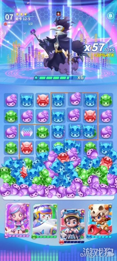 游戏的基础玩法:就是通过消除为玩偶积攒技能,造成刷屏式的连击,消除越多,对关卡怪物造成的伤害越大。每个关卡有三星通关条件,还有许多障碍物限制玩家去轻松消除,阻止玩偶积攒技能,而玩家就是想办法让玩偶释放更多次技能,快速消灭怪物。