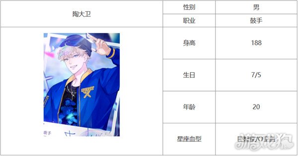 闪亮的你陶大卫人物介绍,基础信息一览。陶大卫是一个非常年轻的鼓手,他是很热情自来熟的性格,有玩家对于该角色还不是很了解,可以参考小编给大家带来的游戏攻略,希望对感兴趣的玩家有所帮助,大家一起看一看吧。