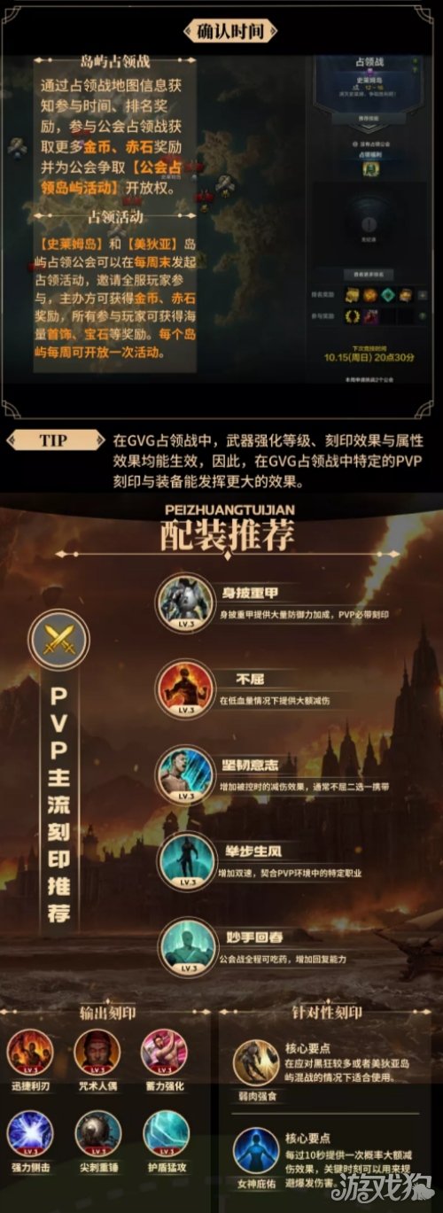 命运方舟公会占领战玩法全解读,至强公会争霸。公会战是一种全新的公会成员集体参与、对抗、竞争的活动,在公会战中,通过讨伐BOSS、击杀敌对公会玩家以及完成指定任务,即可累计积分,通过积分进行排名,根据排名发放公会赤石、金币等奖励,在讨伐战中,获得第一名的公会可以选择是否开启岛屿活动,根据参与岛屿活动的人数可以获得大量首饰与装备奖励。