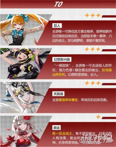 游唯一可降低敌方暴击概率,能单能群并且还育能丝给合自身回血,当前版本唯一真神,六边形战士。双马尾萝莉,谁能不喜欢呢。