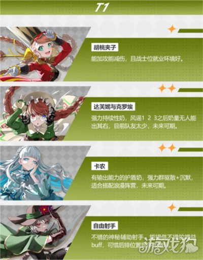 全游唯一群奶,必练角色,辅助进攻能力和奶妈能力都爆炸。永恒阵营领袖,领袖同理,抽到必培养。