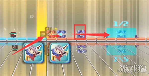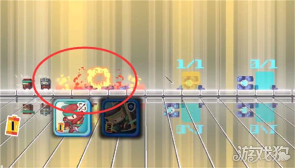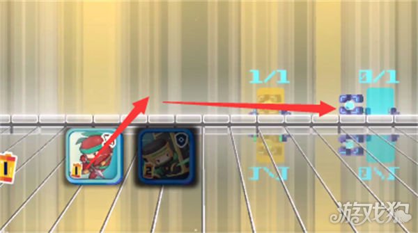 2、首先我们使用一个弓箭手将中间的芯片推至左侧目的地,注意放弓箭手的位置如图所示,我们在弓箭手马上将芯片推进去的瞬间放置剑士去砍左侧的爆炸芯片。