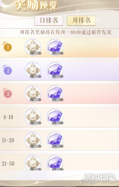 奖励:竞技场分为周奖励和日奖励,日奖励是每日23:30分进行结算,周奖励是每周日的23:30分结算,结算时根据当前排名获得对应奖励。
