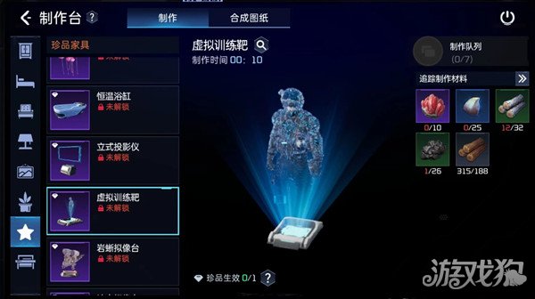 星球重启虚拟训练靶怎么制作 需要哪些材料,这个是紫色品质珍品家具,自然需要先获得图纸,在庄园达到5级之后可以使用,需要在制作台处兑换得到。
