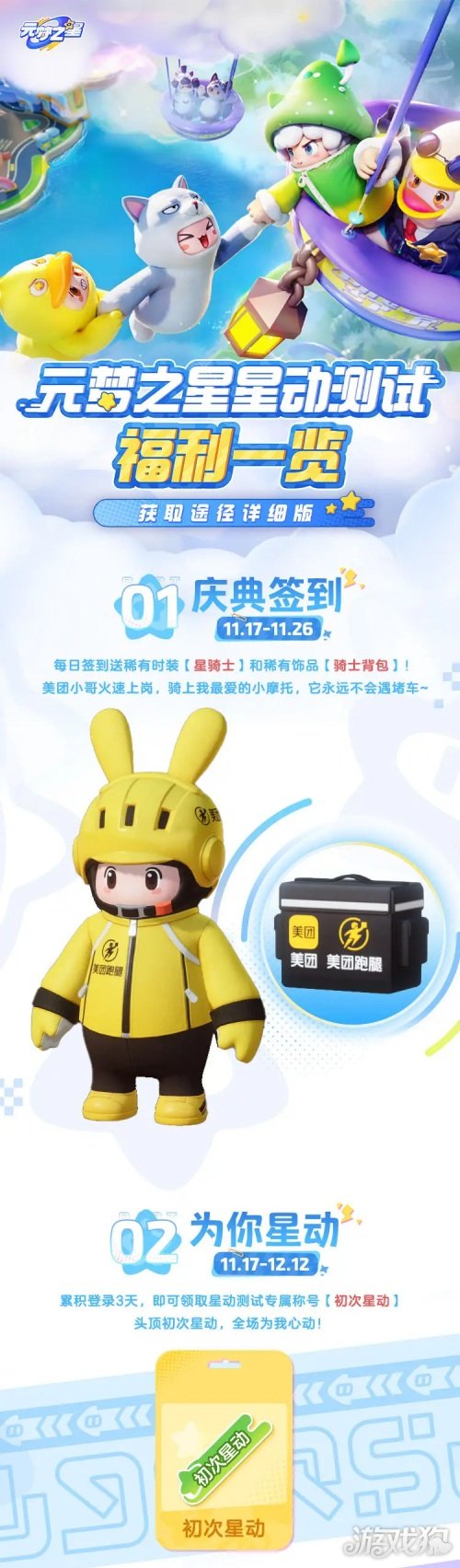 元梦之星星动测试重磅福利一览,获取途径详细版。元梦之星星动测试已于昨日(11月17日)正式开启,海量福利重磅来袭,今天小编就为大家整理好了星动测试福利汇总,感兴趣的小伙伴快一起来看看吧。