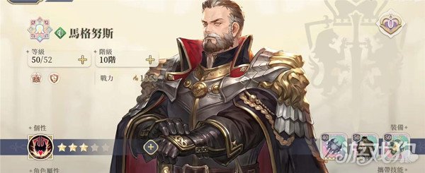 第二个介绍的就是马格努斯,这个角色的战斗也是非常的刚猛的,当他使用技能攻击的时候,只要在他周围三格以内的敌人都会受到伤害,并且会令敌人的攻防属性降低,而且不管是物理攻击又或者是物理防御这一方面它的表现都是非常出色的,可谓是一个全能型的选手,它的核心技能是必胜战吼,当使用这个技能的时候,如果这个时候它的周围两格内有敌人被友军给击败了,那么就会将身边的这些敌人的攻防以及攻魔都降低20%,同时还能为我方或者是自身提供一个增益,为敌人带来减益效果。