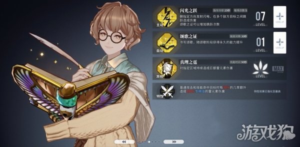 该角色在游戏内属于四星输出支援类型的游徒角色,她的特性让她在实战中会优先攻击空中目标单位,并且会有伤害加成,主动技能的机制很简单就是一个单纯的范围性物理伤害,外加可以击落敌方投掷物。自动技能可以大幅度提升自身的暴击爆伤,并且对己方全部单位增加一定的暴击,异核是一个范围性的物理伤害和拦截输出技能。