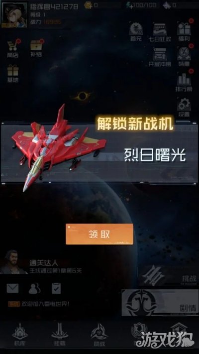 领取战机后,后续就是主线剧情推动,整体思路:继续推图直到把体力全用完,然后在日常商城里把体力药都买完(每天必买体力和精力)。今天一般来说是可以领取一套完整的挂载和一些补给卷的。然后去补给继续抽奖,抽完后依然是提升战机—升星——有体力过剧情——强化挂载和战机这一套流程战力再次提升。将今天所有能提升战力的地方都提升到极限时,进入火力竞技打到自己能打到的最高排名。
