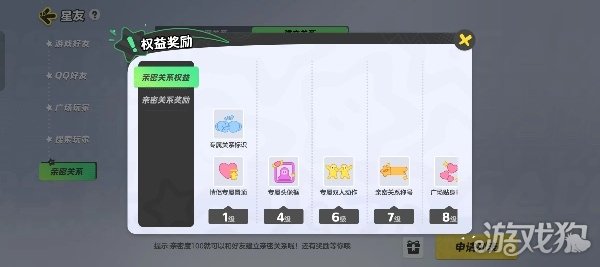 5、需要注意的是,只有双方好友直接的亲密度达到100才能创建,并且还有对应的等级奖励。