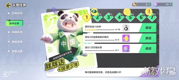 元梦之星首测活动期间,还有各种限时任务,通过做任务获得稀有或非凡的皮肤,比如这款“胖胖达+国潮少年”的套装皮肤。