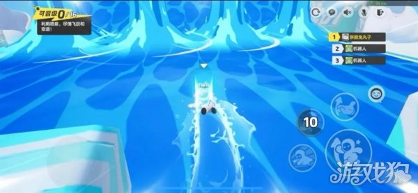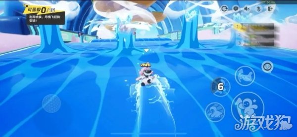 落地后就是第二处喷泉区啦,这里同样分布着四柱喷泉。重点来啦!星宝需要借力左二的喷泉,才可快人一步,飞跃到上方居中位置的滑水赛道!上方赛道依旧会有冰块障碍物,星宝们需要灵活躲避呀~
