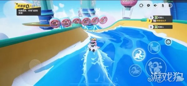 当然,错过了喷泉助力的星宝也不用灰心,走下面的宽阔水道也可以继续向前冲。但水道上会有各种栏杆阻拦星宝前进的脚步,星宝使用好跳跃技能,就能避开啦!