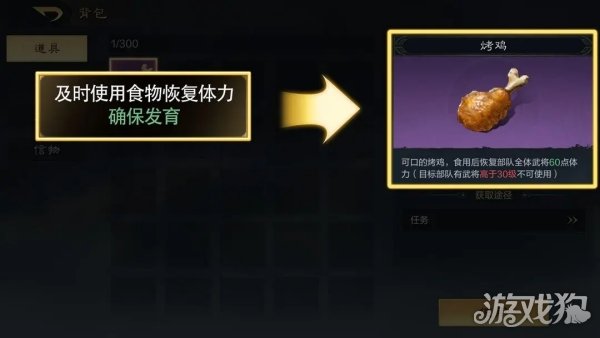 4.前期需要关注武将体力。30级前,可通过食物恢复体力。为确保武将等级后续提升,接近30级时需密切关注体力和经验值,及时使用食物恢复体力,确保发育。