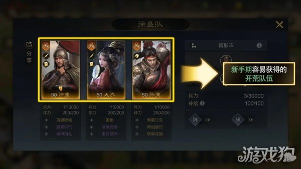 7.合理搭配武将以最大化战斗力。选择武将时需考虑属性、技能和特长。前期武将少时,推荐使用前期较易获得的徐盛+大乔+孙策的组合,保证前期战斗无忧。