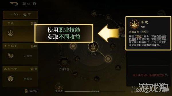 11.及时解锁与提升职业技能。使用职业技能,能够加快发育速度或为盟友提供关键的支持,因此,主公需多多通过讨贼,军演等方式获取职业经验,解锁更多职业技能。