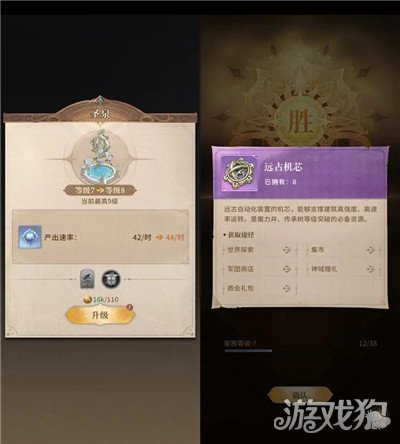另一个与金矿一同解锁重建的建筑——圣泉则主要产出家族经验。顾名思义,要让家族等级提升,家族经验必不可少。家族等级虽然不能直接提升战斗力,但很多能提升战斗力的机制和系统却与它息息相关,比如家族等级每提升10级就可以花费金币提升布阵补给。到达22、32级时可以在将单位布阵在更多的位置上,不朽者上阵的人数也与家族等级有着离不开的关系。总之家族等级越高,我们离家族复兴就又近了一步。