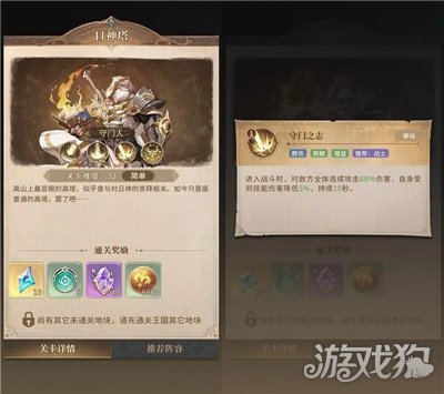在关底区域【日神塔】我们会遇到BOSS守门人,他拥有降低自身受到技能伤害的技能,并且全体伤害较高。建议大家将8费推荐阵容里先民法师替换为我们前面解锁的【矮人射手】,降低团队输出中技能伤害的比重即可通关。如果大家这时候矮人成员的品阶尚未提升上来,也可以考虑使用前面通关【万宝神殿】时获得的“召集亲和·矮人”来定向召唤矮人成员并提升品阶。