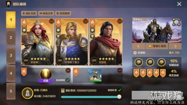 技能联动:三位英雄都有较高的普攻伤害,可以受到连击、暴击、焰印记增幅效果,约克和瑞斯卡都是兵力越高输出越高,配合圣堂骑兵特性和凯瑟琳的击溃回血效果,爆发输出更为强力。