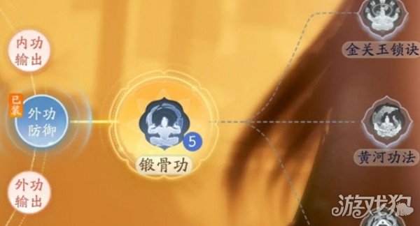 4、游戏中的锻骨功-主T、青囊术-治疗、内养功-内功输出、圆劲功-外功输出。