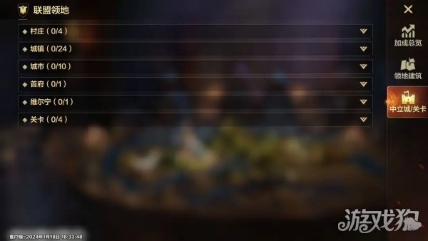 3、中立城/关卡该页面展示了联盟当前占领的村庄、城镇、城市、首付、维尔宁和关卡等全部中立城市或关卡。