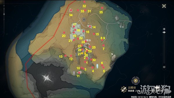 1、云陵谷中宝箱1-35在该地图的中部凹陷地区。
