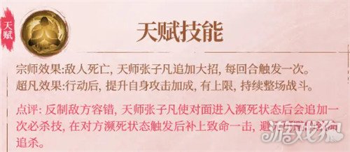 宗师效果:敌人死亡,天师张子凡追加大招,每回合触发一次。