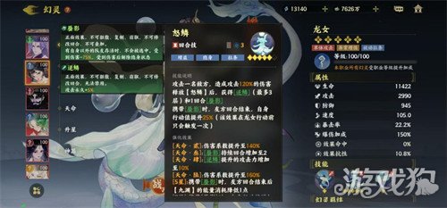 5.龙女(后排):5星携带【【蜃影】】大招【九渊】能耗减1,作为单体输出幻灵,放后排优先收割残血。