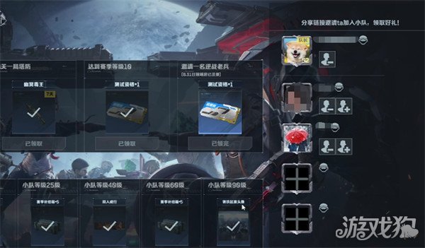 当然在特殊老友的招募活动当中,玩家也可以在招募面板内,邀请并未注册游戏的玩家,随后和他一同组队,当小队等级升级到二十五级、四十级、六十级、九十级时,分别能够领取到游戏内的资源奖励,最高级时,即可获取皮肤奖励。