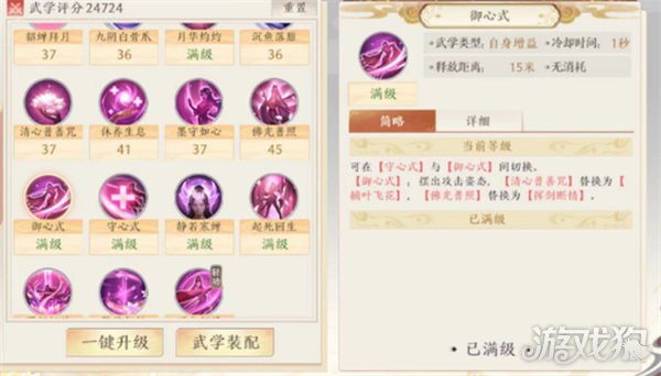 守心式:拥有4个加血技能、2个单体攻击技能、1个控制技能和1个Buff技能
