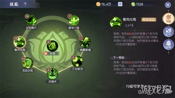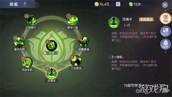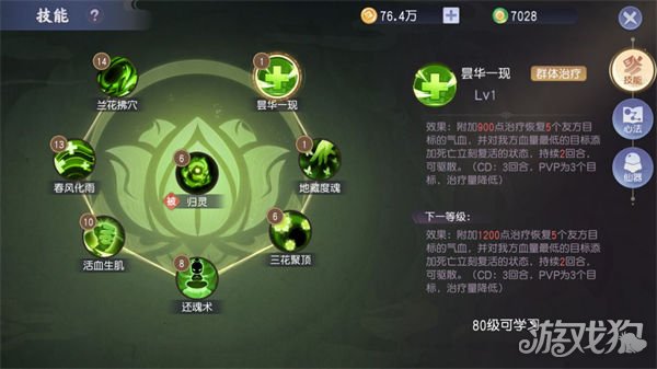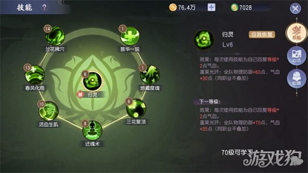 单体的恢复血量的技能,恢复的血越多需要的真气也是越多,但是有上限。