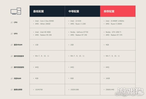 游戏配置要求请参考下图: