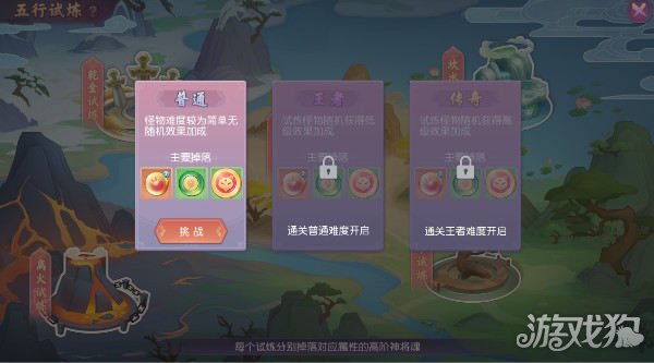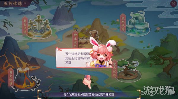 五行试炼中分为金、木、水、火、土五个试炼,分别掉落对应属性的神将魂,想要获得宝物亦要通过层层难关,少主可有兴趣前往?
