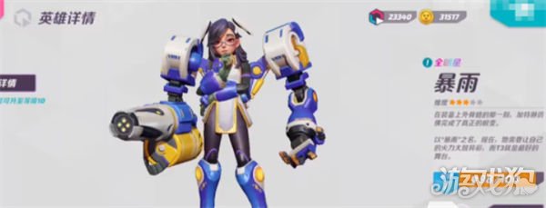 1技能超载强化形态,可以让暴雨转换形态,这个形态下暴雨的武器威力以及免伤属性提升,不过就是自身的移动速度以及D夹明显下降,让暴雨成为一名真正的机Q手进行压制。