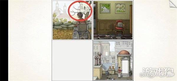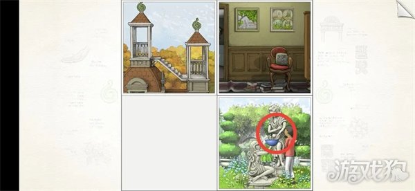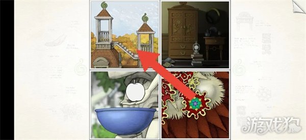 6.将图3的门叠在图4的墙上,小男孩走进去,放大图4。点击图4雕像,小男孩将碗放在雕像上。