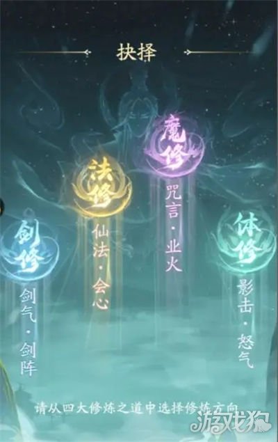 在游戏中开局的时候玩家们可以选择剑修、体修、魔修和法修这四个修炼方向,大家可以根据自己的喜好来选择合适自己的修炼方向就可以了。