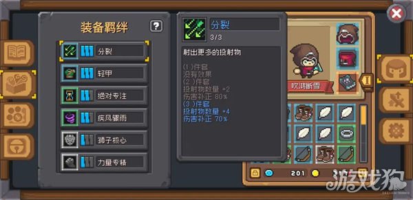 二,装备搭配:该玩法主要靠蓄力攻击,所以搭配装备以分裂,绝对专注,锁定目标最好。