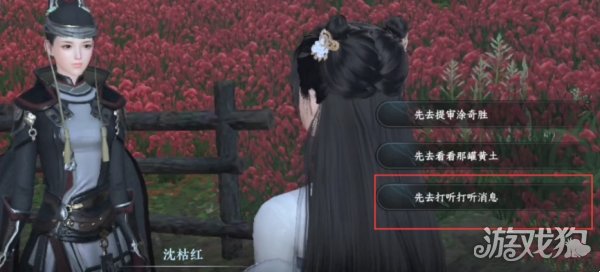2、沈枯红会问玩家应该先做什么,这个时候要选择【先去打听打听消息】。