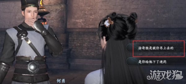 6、何勇狡辩,涂奇胜是自缢的;选择【涂奇胜服用了迷药】